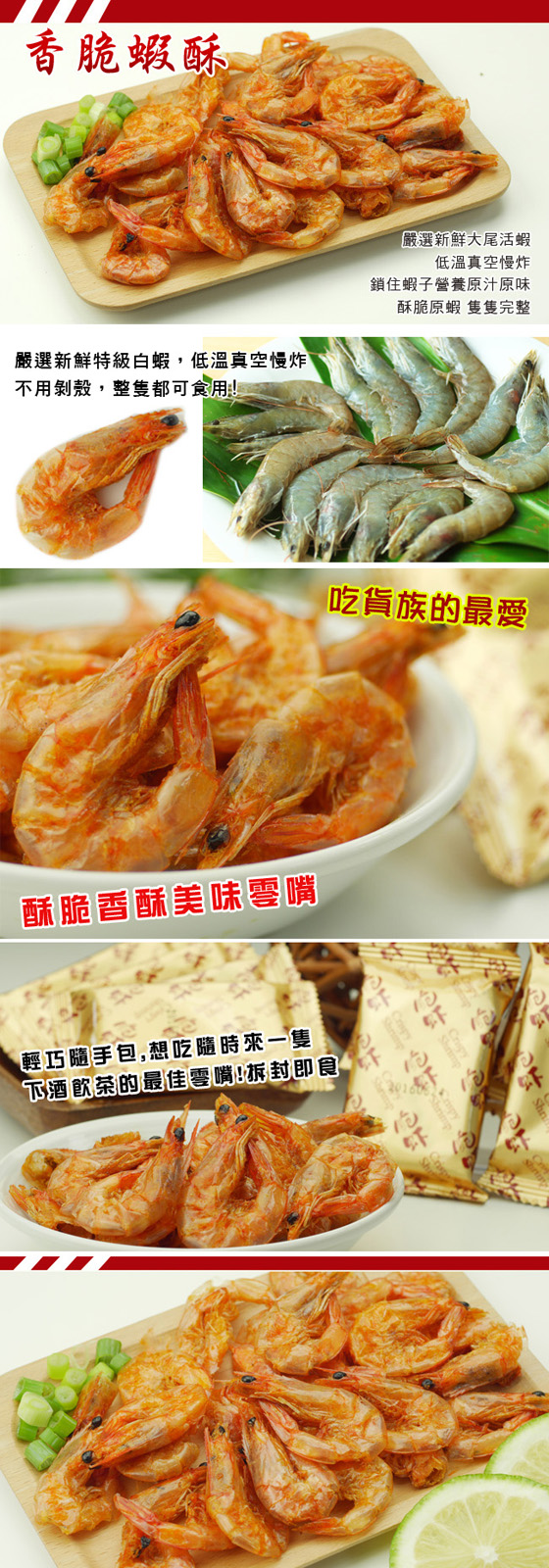 ●高科技低溫烘培,肥美白蝦化身脆勁零嘴